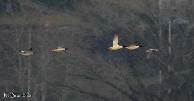 Sul catalogo del Dottor Erasmo Buzzi leggiamo: 11.Pescajola Mergus albellus: Da noi comunissima d’inverno. 12.Smergo minore Mergus serrator comunissimo d’inverno. 13.Smergo maggiore Mergus merganser più raro delle specie precedenti. Pur non essendo un lavoro scientifico, come da lui affermato, certamente sono dati che qualche elemento di verità hanno. Oggi le cose sono ben diverse: In Lombardia e precisamente Sul lago di Como lo Smergo maggiore ha la sua prima accertata nidificazione nel 2005 (vedi articolo all’indirizzo http://www.cisniar.it/picus_n°_62.htm) nel 2006 in alto lago, precisamente presso Piona (Lc) di Smergo mag. ne sono stati individuati 16, (vedi http://crosvarenna.blogspot.com/ – Annuario 2006). Nel 2007 sul Lago di Como sono state segnalate 3 nidificazioni di Smergo maggiore in particolare: a Varenna (LC) 10 anatroccoli, a Oliveto Lario (LC) 8 e 7 anatroccoli osservati presso Lezzeno (Lc) di cui però non si sa l’esatta località di nidificazione. Vedremo come si evolverà la presenza di questi uccelli sul nostro lago, oggi godiamoci l’osservazione di questa splendida anatra.