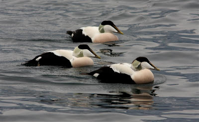 Continua la presenza a Varenna (LC) dei tre maschi di Edredone Somateria mollissima. (foto Roberto Brembilla)