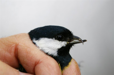 Cinciallegra con becco anomalo, cattura fatta dall’ inanellatore F. Ornaghi a Biassono (Mb) il 16 ottobre scorso.