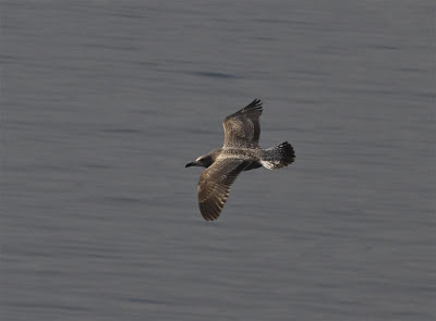 La prima caratteristica che balza all’occhio è l’aspetto generale di un gabbiano reale al primo inverno ma uniformemente più scuro e bicolore.