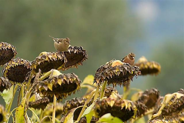 La coltivazione a perdere di girasoli e sorgo ad opera della Riserva del Pian di Spagna che ha gentilmente accolto i nostri suggerimenti, sta dando buoni frutti: attualmente uno stormo di fringillidi sta banchettando alla grande!