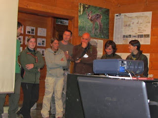 coi cervi al Lago di Piano con una brigata a prevalenza femminile; sono con me