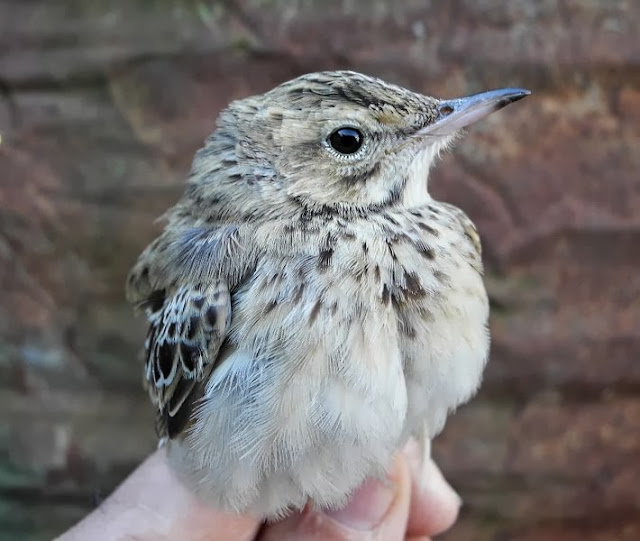 Colico (LC), interessantissima cattura e inanellamento da parte di Enrico Viganò di un giovane di calandro maggiore, il fatto è da ritenersi straordinario sia per la rarità della specie che per il periodo.