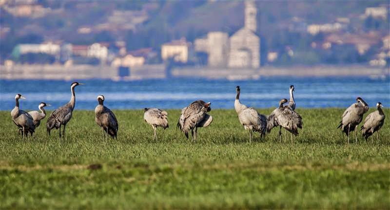 23 gru in sosta migratoria presso la Riserva del Pian di Spagna (CO)