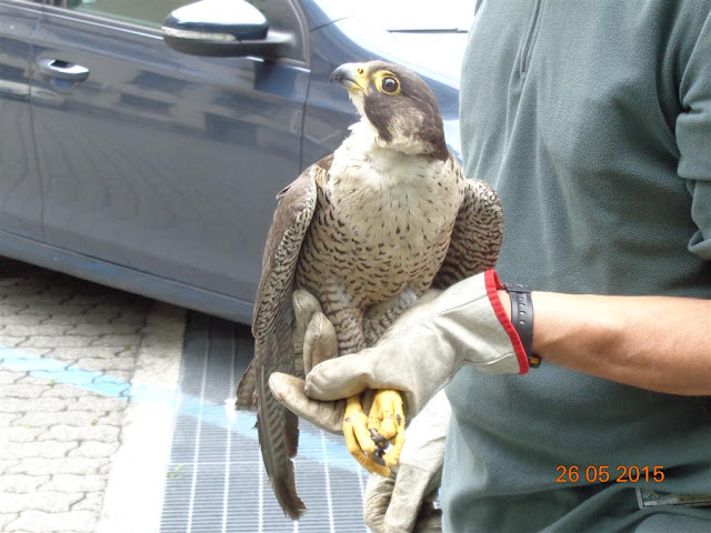 Lecco, 26 maggio. Un falco pellegrino (Falco peregrinus) insegue un piccione che per sfuggire alla cattura si infila all’interno del Bar Roma in via Leonardo da Vinci.