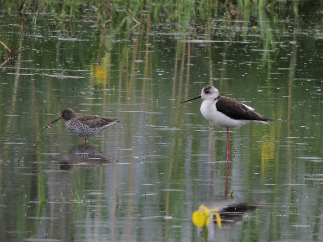 Pettegola (Tringa totanus) e Cavaliere d’Italia (Himantopus himantopus)