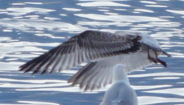 Individuo del 1° inverno, dovrebbe essere la prima osservazione documentata in Alto Lario di questa età: si nota la presenza di 4 colori (becco e primarie neri, testa bianca, copritrici marroni e dorso grigio), il becco affusolato con poco angolo gonidale e punta non uncinata, le doppie e chiare barre alari e le leggere ancorette sul dorso.
