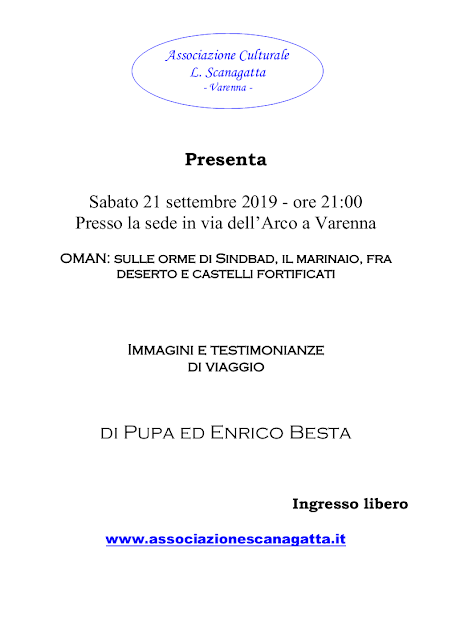 Settembre Sabato 21, alle ore 21 presso la sede in via dell’arco – OMAN: sulle orme di Sindbad, il marinaio, fra deserto... Read More
