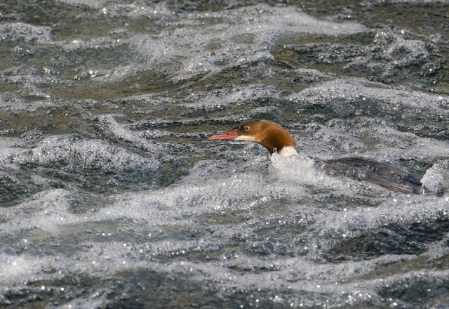 Lo smergo maggiore sfida la corrente del fiume (R. Brembilla)
